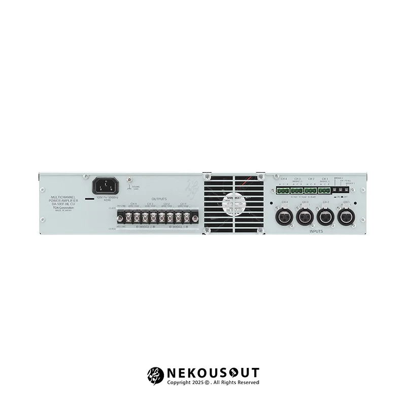 TOA DA-500FH دارای ۴ کانال با توان خروجی بالا در حالت ۱۰۰ ولت است. طراحی کلاس D آن باعث صرفهجویی در مصرف انرژی میشود. خنککننده داخلی، محافظهای الکترونیکی و پنل LED وضعیت، کارکردی پایدار را تضمین میکنند. اتصالات متنوع با ورودیهای بالانس و کانکتورهای Phoenix و XLR، امکان اتصال امن را فراهم میآورد.