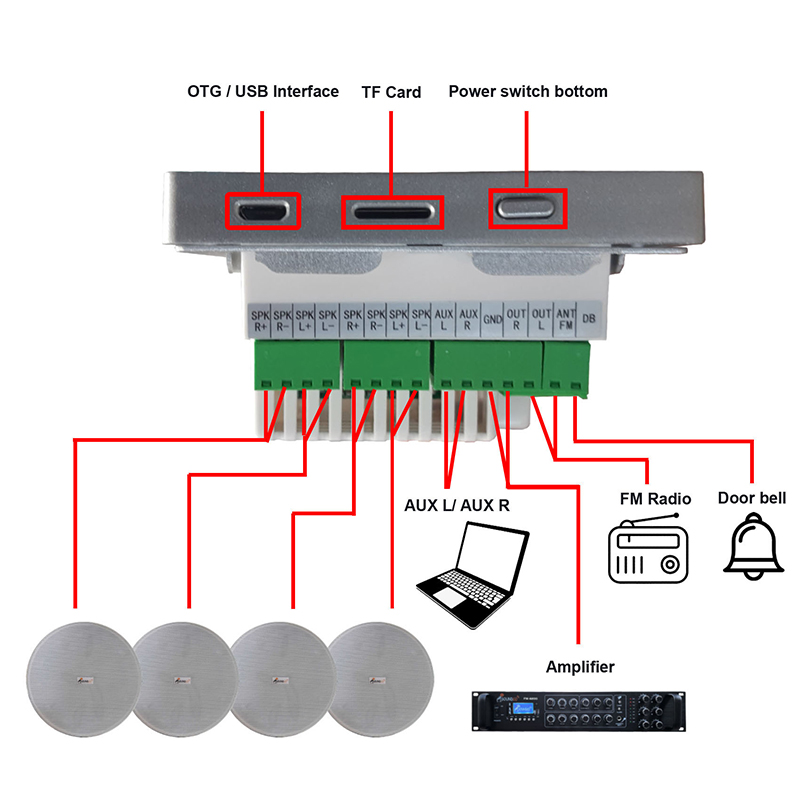 مدیا پلیر: بلوتوث ، درگاه usb ، درگاه کارت حافظه ، ورودی AUX ، رادیو