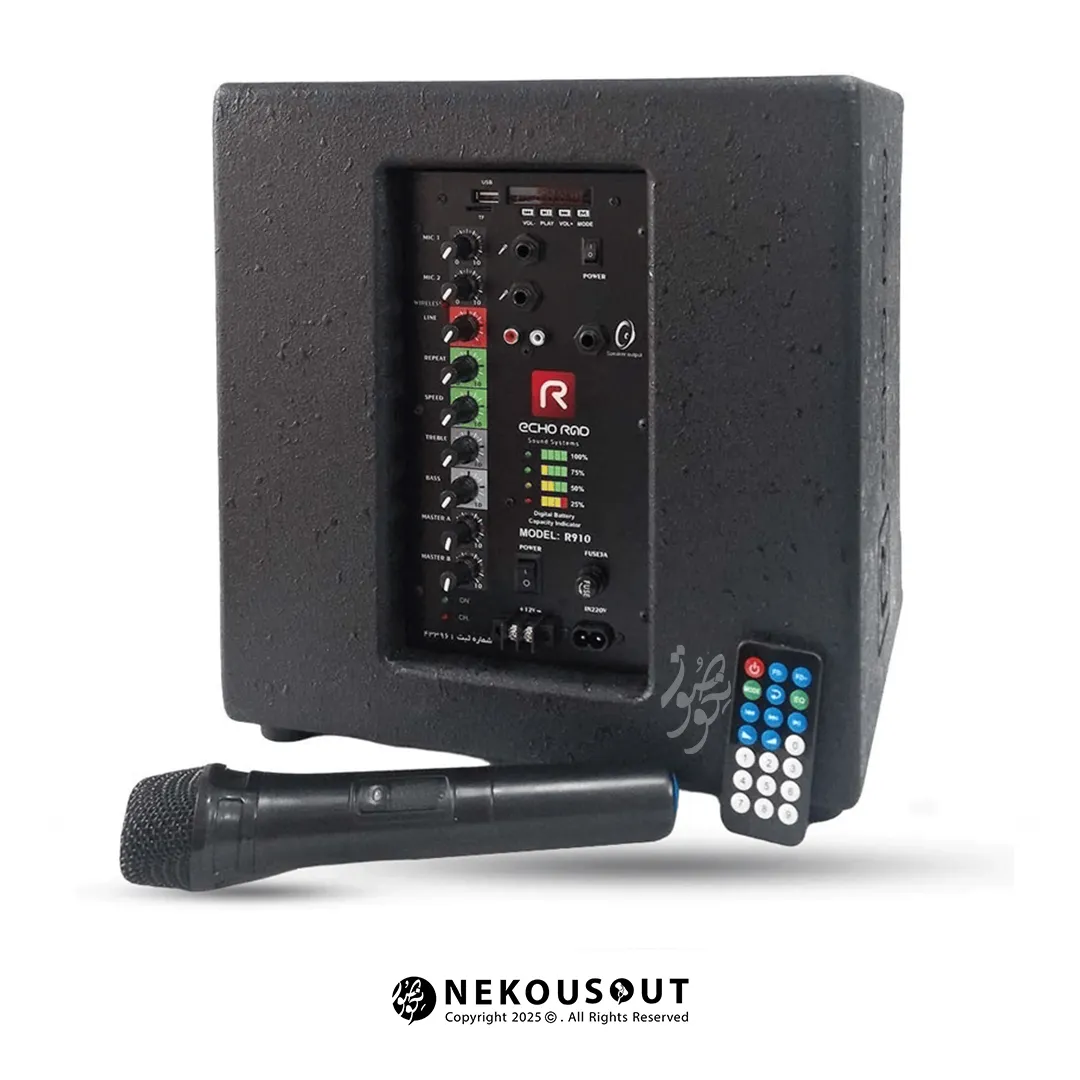اکو پرتابل Echorad R910 یکی از پرفروشترین سیستمهای صوتی پرتابل در ایران است که با توان خروجی بالا، امکانات کامل و بدنهای مقاوم، برای انواع مراسم و برنامههای سیار طراحی شده است. این دستگاه با ابعاد 41×31×37 سانتیمتر و وزن 13.6 کیلوگرم، قابلحمل و در عین حال قدرتمند است و کیفیت صدای بسیار شفافی ارائه میدهد.