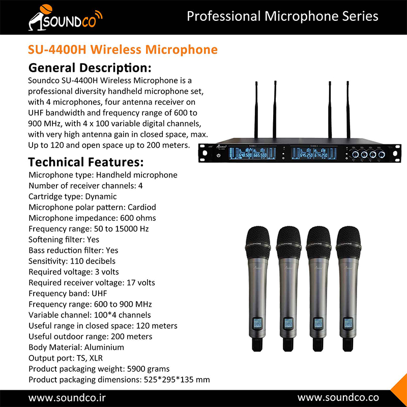 میکروفن بی سیم چهار کانال ساندکو مدل SOUNDCO SU-4400H عدد