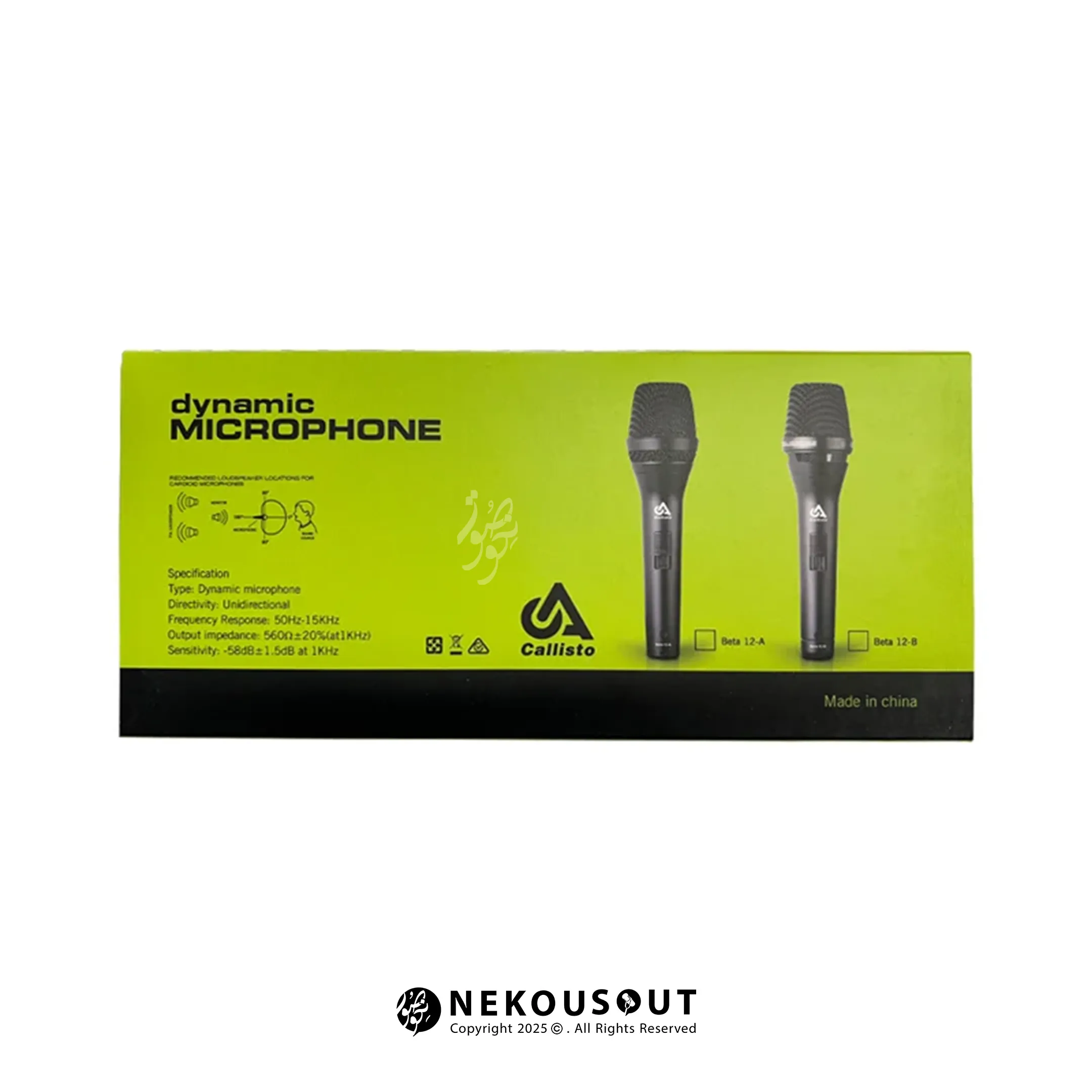 کالیستو Beta 12-A با بازه فرکانسی 50Hz تا 15kHz و حساسیت −58dB، صدایی گرم، طبیعی و بدون نویز تولید میکند. الگوی قطبی Cardioid باعث میشود فقط صدای مستقیم از جلو دریافت شود و صداهای اطراف و نویزهای محیطی حذف شوند. امپدانس 560 اهم نیز موجب انتقال سیگنال صوتی تمیز و باکیفیت میشود.