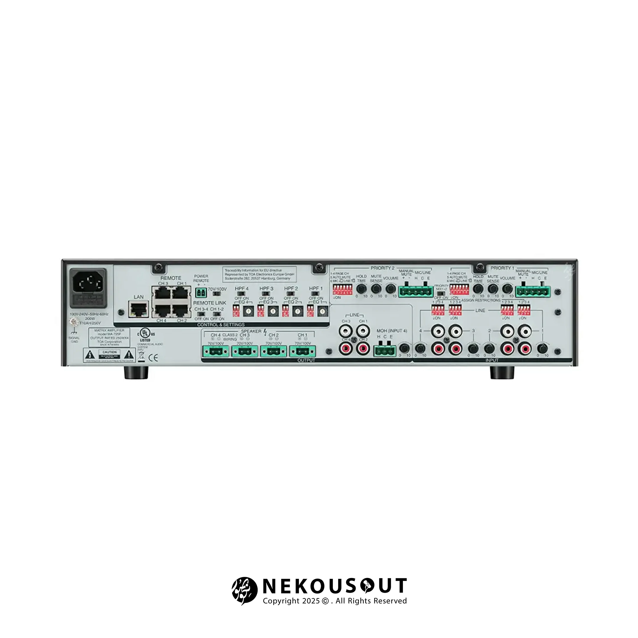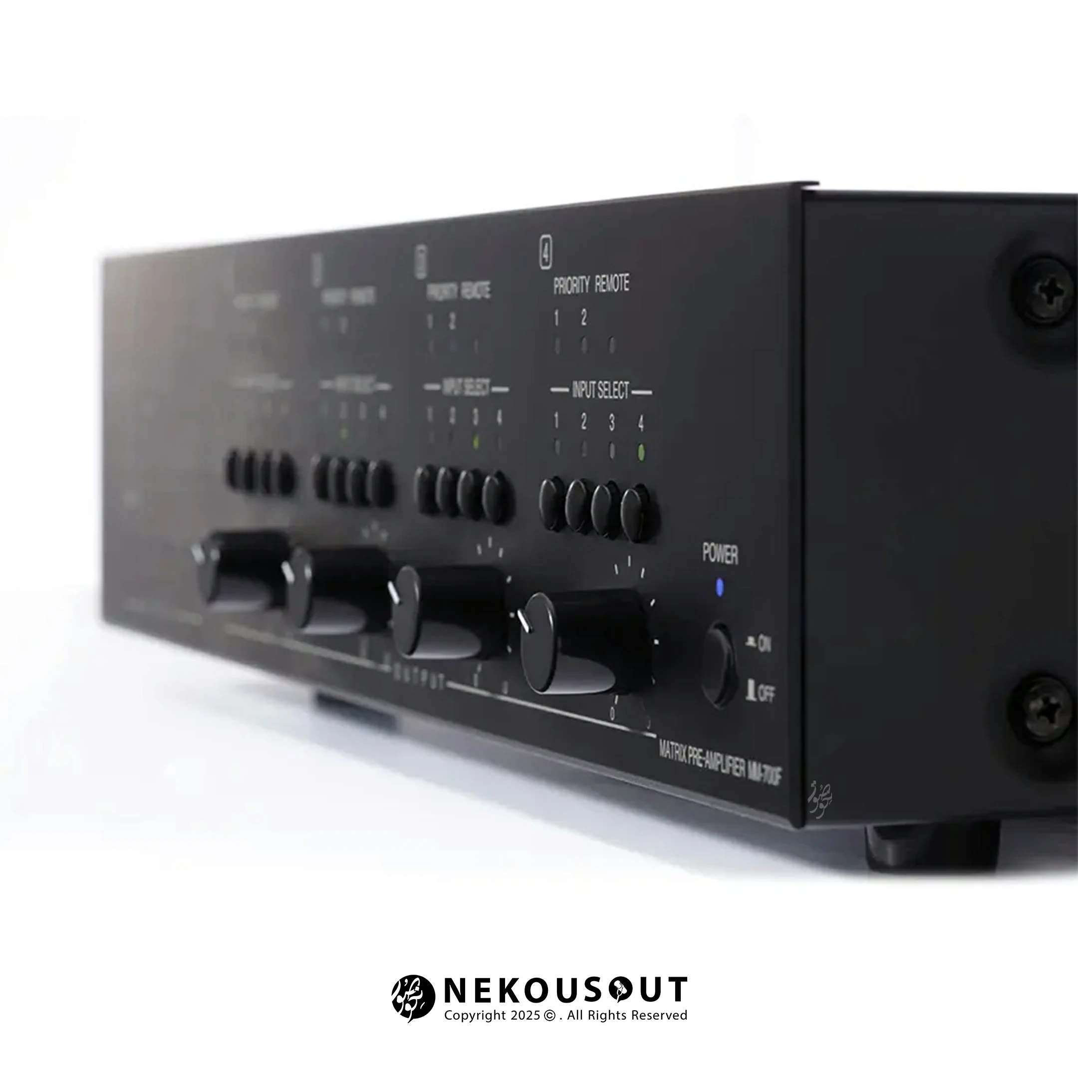 این مدل با چهار ورودی لاین استریو و قابلیت مسیریابی به چهار خروجی صوتی همراه شده است. این دستگاه شامل دو ورودی اولویتدار MIC/LINE است که برای اعلان عمومی و پیجینگ بهینهسازی شدهاند و میتوانند سایر ورودیها را فیلتر کنند. تنظیمات ورودی شامل کنترل سطح، حساسیت MUTE و زمان نگهداری آن است. هر خروجی قابلیت ارسال سیگنال به سیستمهای دیگر را دارد.
